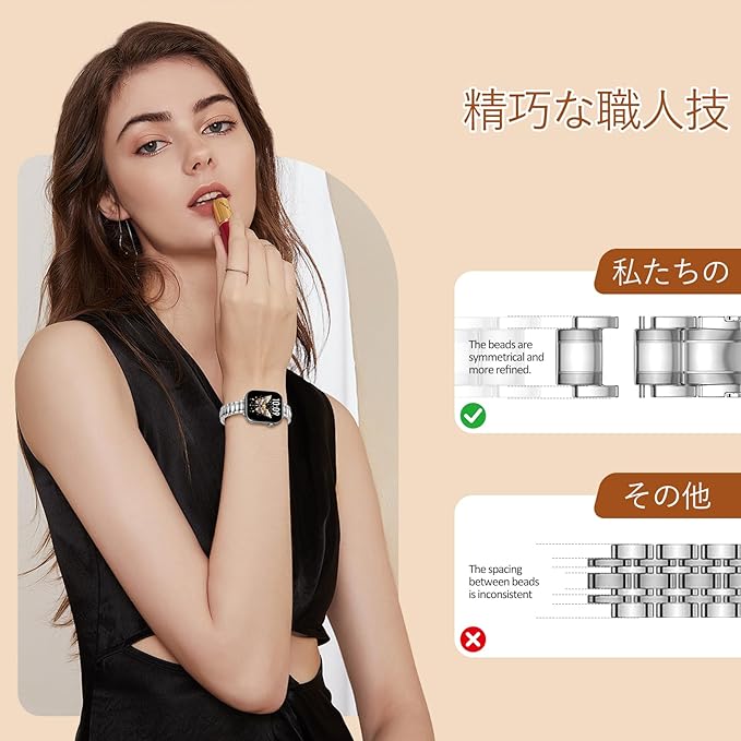 アップルウォッチバンド レディース 用 スリム五珠デザイン ステンレス製|全機種対応 Apple Watch Series 11/10/9/8/6/5/4/3 /Ultra 3 2 1/SE3 2 1 |49mm/46mm/45mm/44mm/42mm/41mm/40mm/38mm|ツートンカラー可選 軽量快適