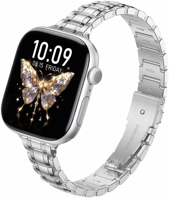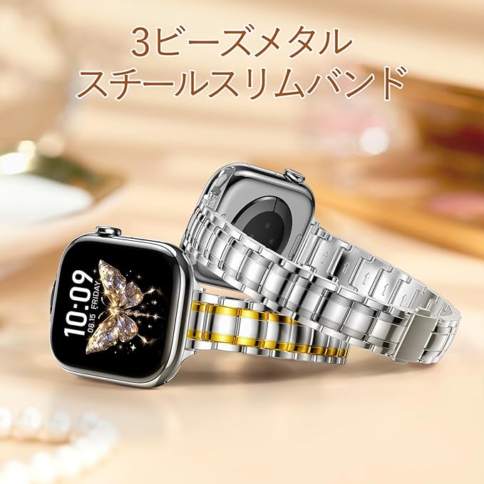 アップルウォッチバンド レディース 用 スリム五珠デザイン ステンレス製|全機種対応 Apple Watch Series 11/10/9/8/6/5/4/3 /Ultra 3 2 1/SE3 2 1 |49mm/46mm/45mm/44mm/42mm/41mm/40mm/38mm|ツートンカラー可選 軽量快適 a