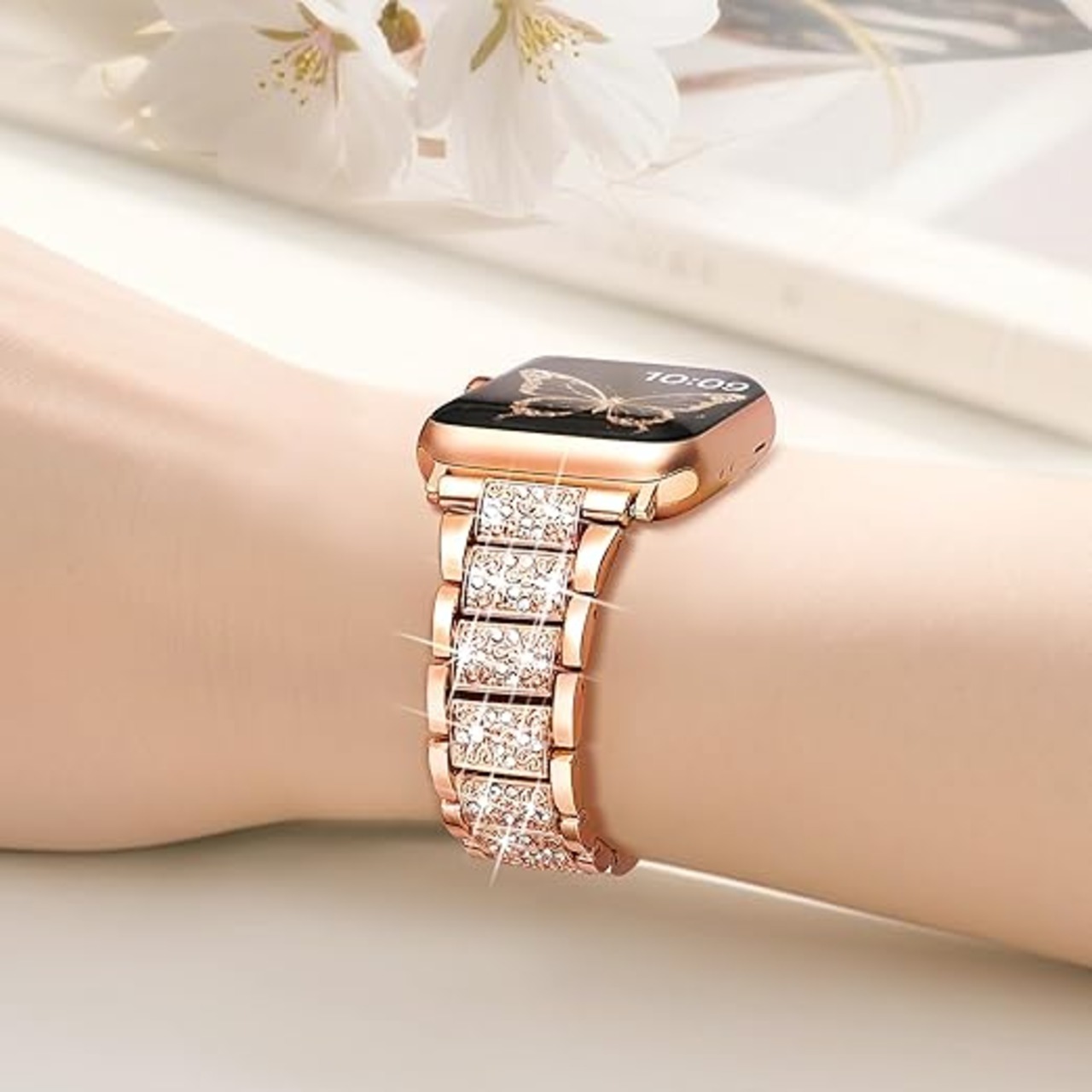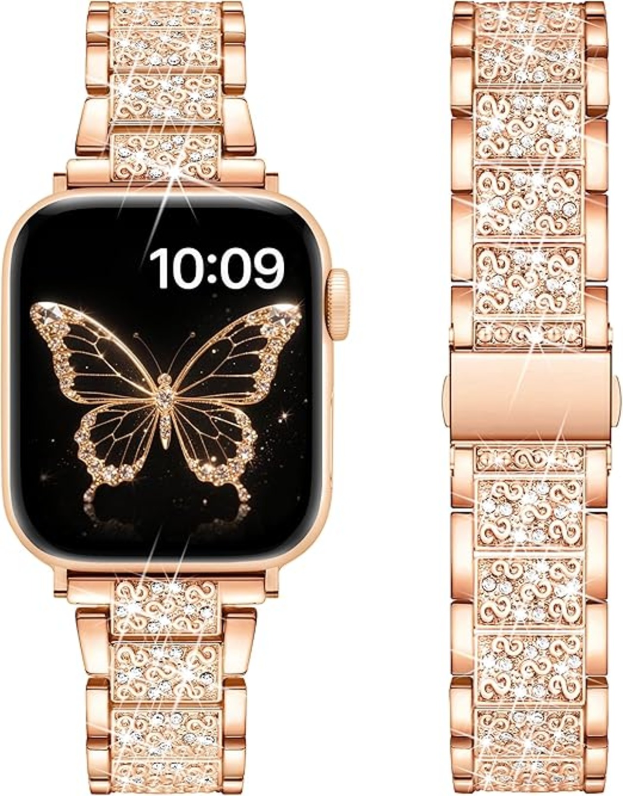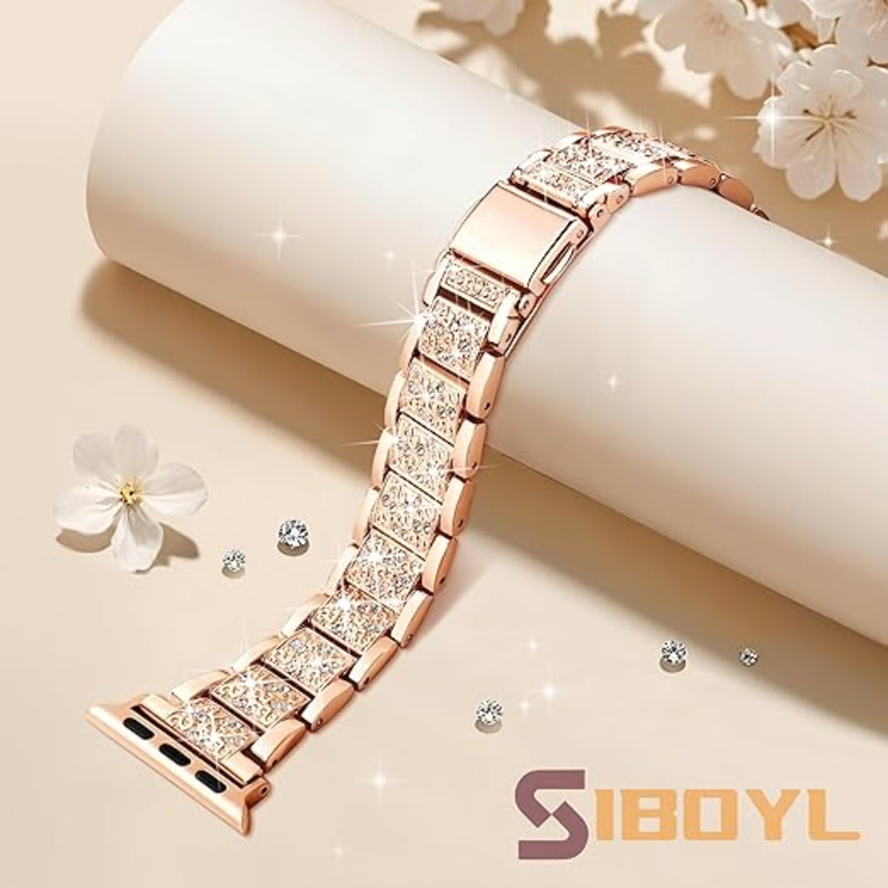 [SIBOYL] クラシック互換うアップルウォッチ バンドキラキラ42mm(Series 11 10) 41mm 40mm 38mm、ワンタッチ着脱、おしゃれ絶妙対応Apple Watch ベルト、かわいいのあっふウォッチバンド レディース、対応Appleウォッチ ベルト11 10 Se 9 8 7 6 5 4 3 2 1-ローズゴールド a