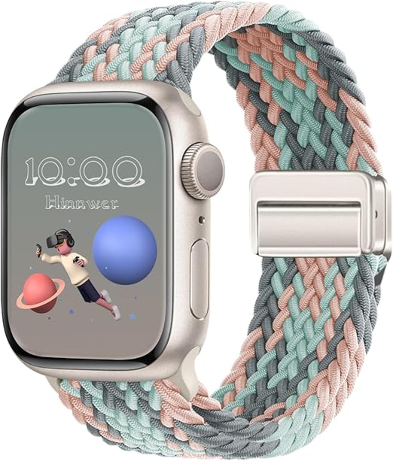 Hinnwer バンド Apple Watch 42mm (Series 11/10) 41mm 40mm 38mm 用の アップルウォッチ バンド マグネット 弾性 ナイロン 編み込み 時計ベルト 柔らかい 通気性 長さ調節 交換ストラップ Apple Watch SE 3 40mm/iWatch Series 11 10 9 8 7 6 5 4 SE 3 2 1 対応 - ブルーグレーピンク a
