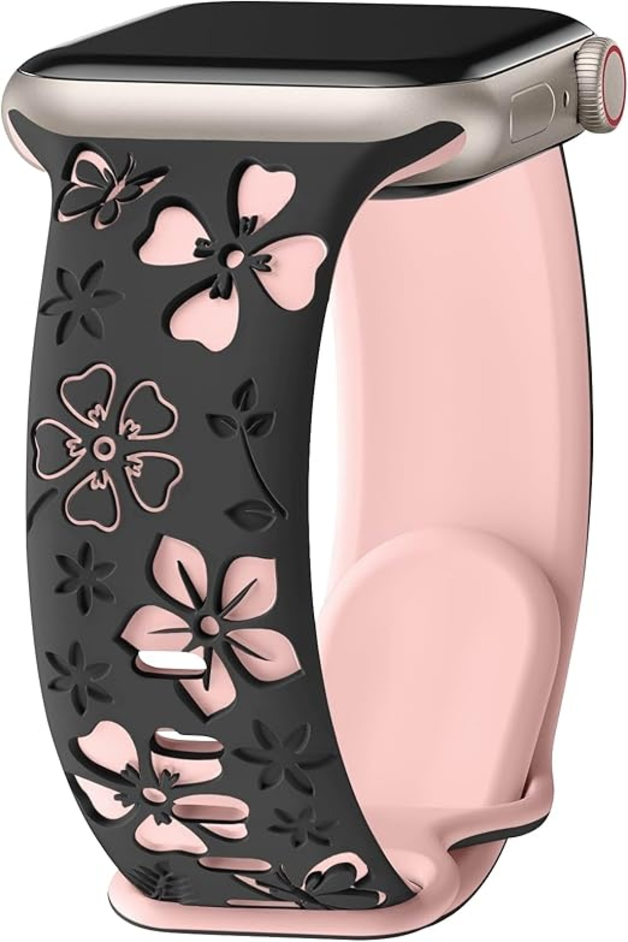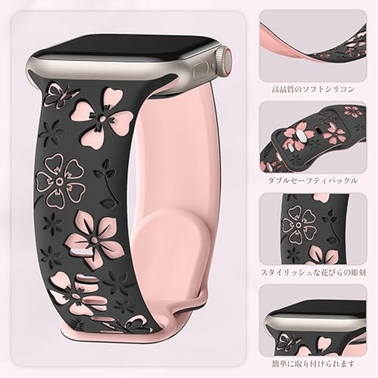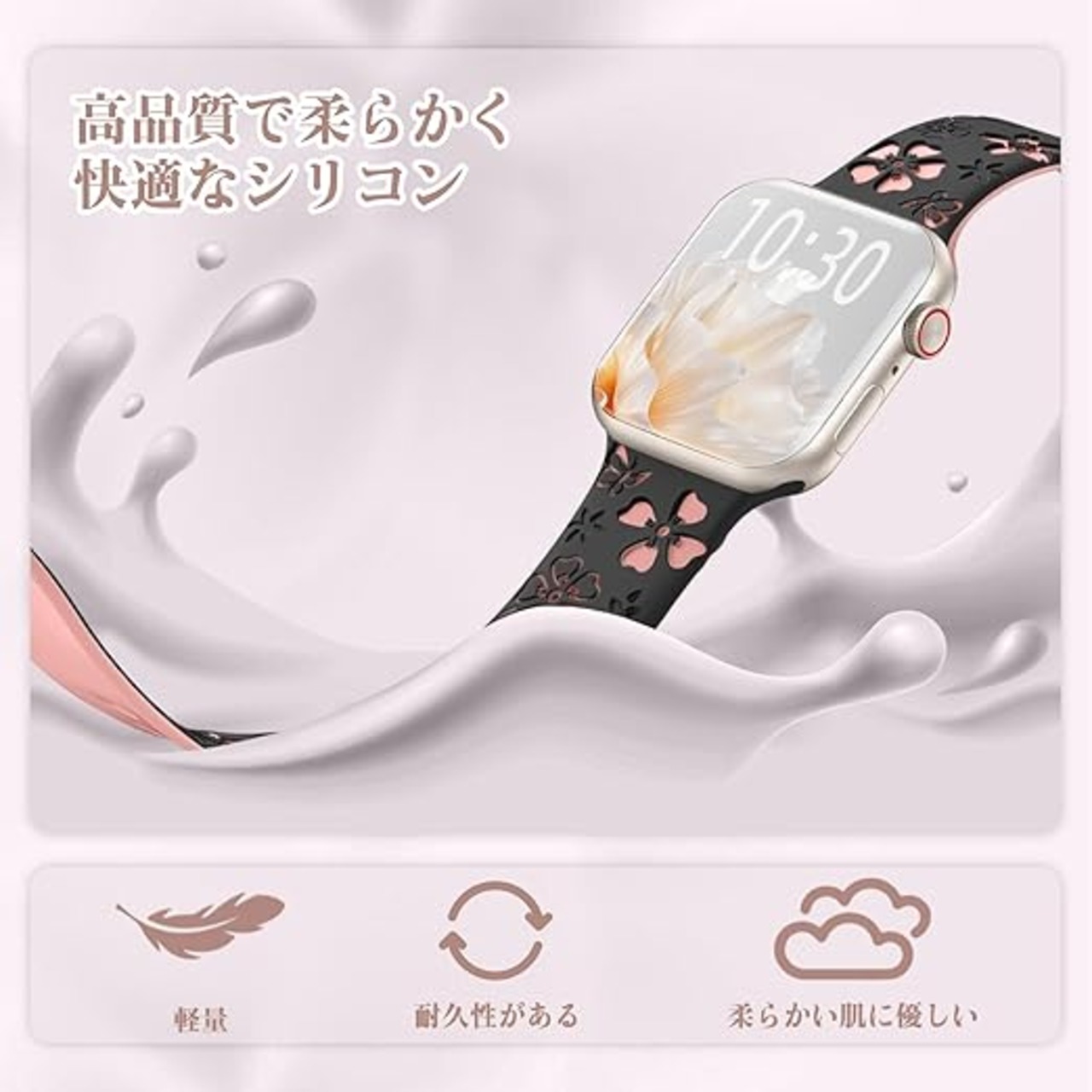 [RoSoki] バンド Apple Watch 対応 41mm /40mm /38mm /42mm(Series 11、10) シリコンバンド Apple Watch SE/Series 11 10 9 8 7 6 5 4 3 2 1 用 スポーツストラップ 時計バンド 替えストラップ ストラップ おしゃれ シリコン 軽量 柔らかい 交換ベルト 装着簡単 調整しやすい (ブラック&ピンク) a