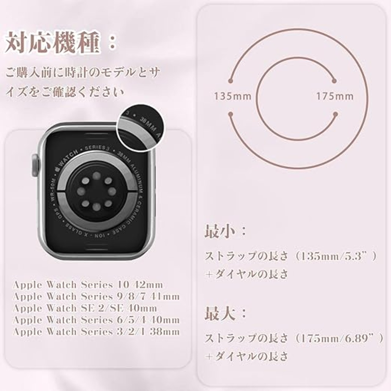[対応機種] 全機種のコンパチブル Apple Watch SE 3 40mm / Apple Watch Series 11 42mm / Apple Watch Series 10 42mm / Apple Watch SE 40mm /Watch 2 40mm / Apple Watch Series 9 41mm / Apple Watch Series 8 41mm / Apple Watch Series 7 41mm / Apple Watch Series 6 40mm / Ap