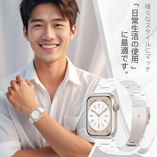 Aniaboho 互換アップルウォッチバンド 樹脂製apple watch バンド 46mm 45mm 44mm 49mm 42mm(Series 3 2 1) アップルウォッチ 11 SE 10 9 8 7 6 5 4 3 2 1 Ultra用軽量交換用ベルト 男女兼用 簡単調整(ホワイト) a