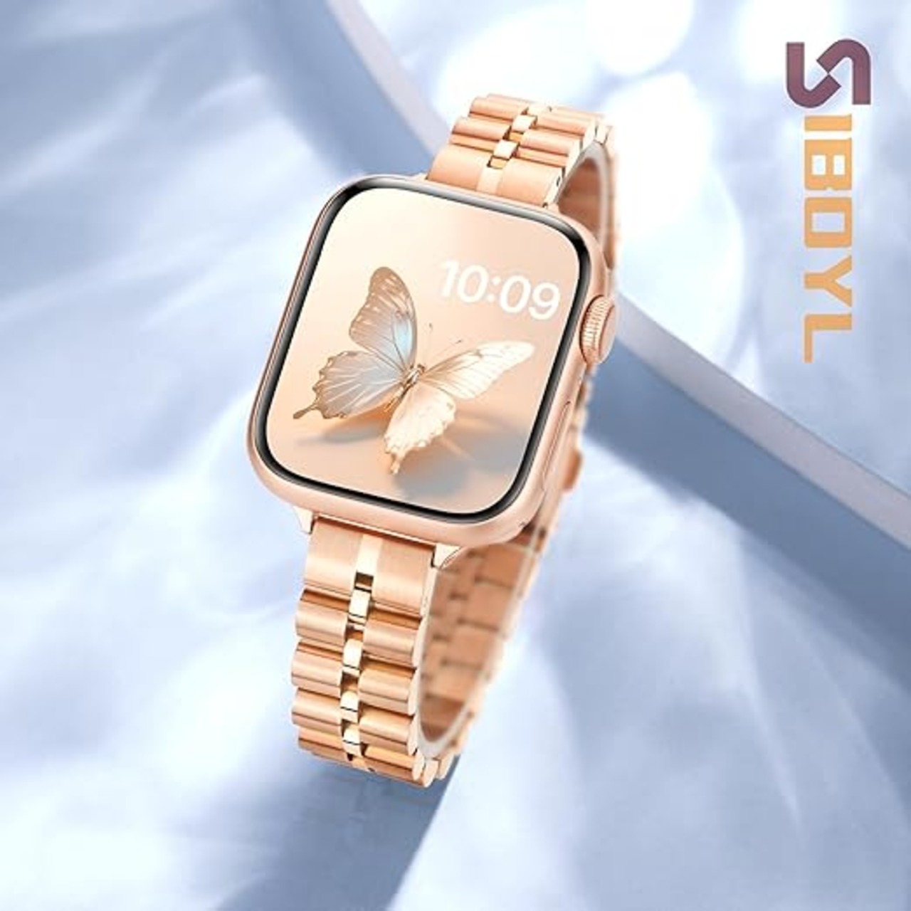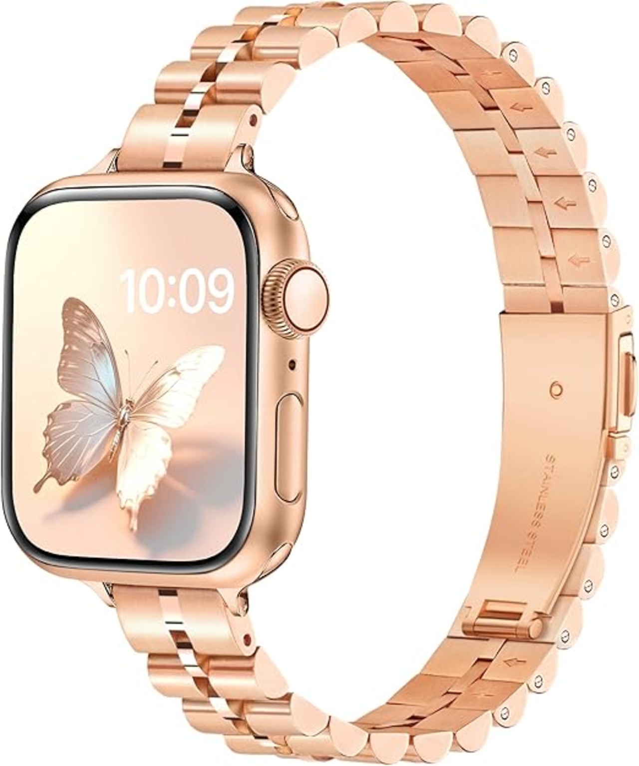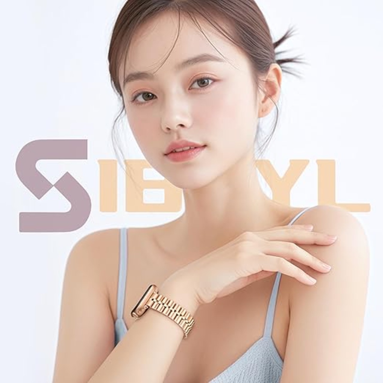 [SIBOYL] 超細 おしゃれい対応アップルウォッチ バンド 42mm(Series 11 10) 41mm 40mm 38mm、繊細な手触り、かわいいiWatch ベルト、コンパチブルApple Watch バンド ステンレス、対応のアップルウォッチ ベルトレディース、対応 Apple Watch Se 11 10 9 8 7 6 5 4 3 2 1-ローズゴールド a