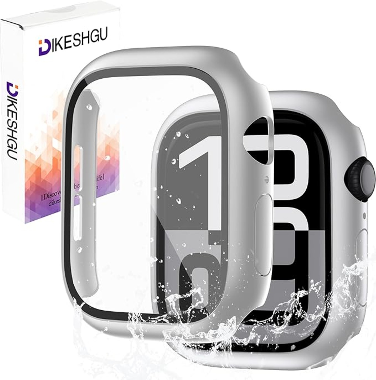 DIKESHGU for Apple Watch 防水ケース Series11/10 42mm/46mm アップルウォッチ シリーズ 11/10用保護カバー ガラスフィルム 一体型 PC素材 タッチ感良好 全面保護 装着簡単 耐衝撃 高透過率 指紋防止 傷防止(シルバー,42mm) a