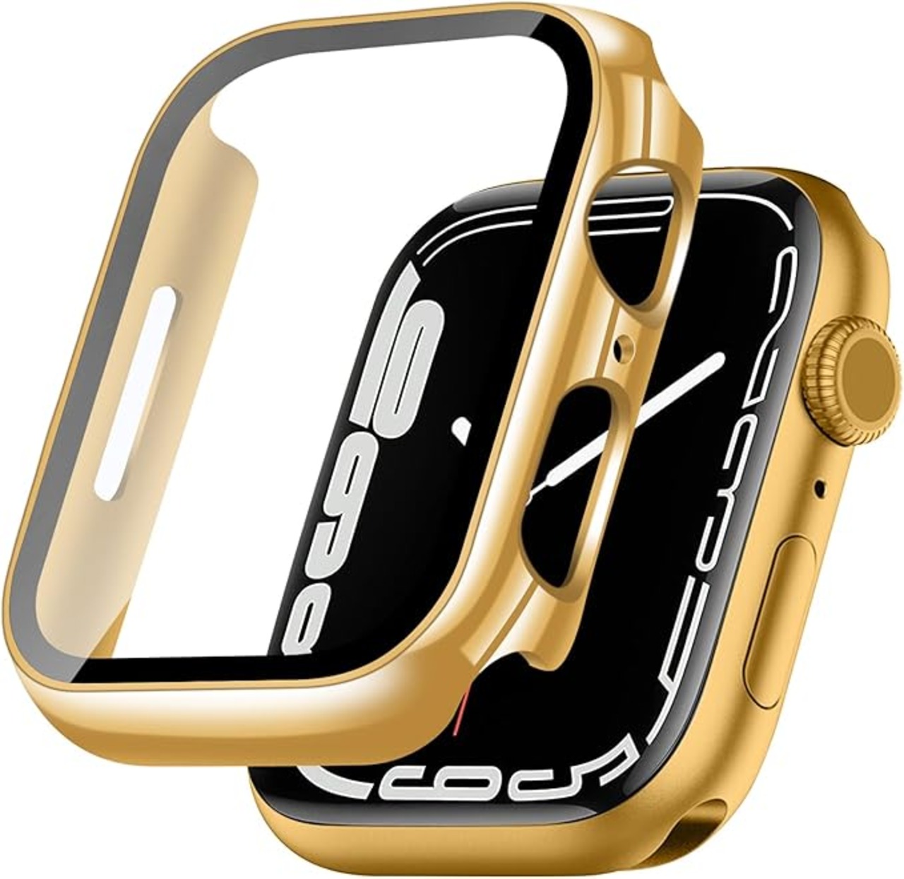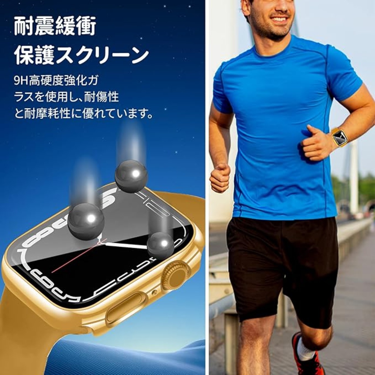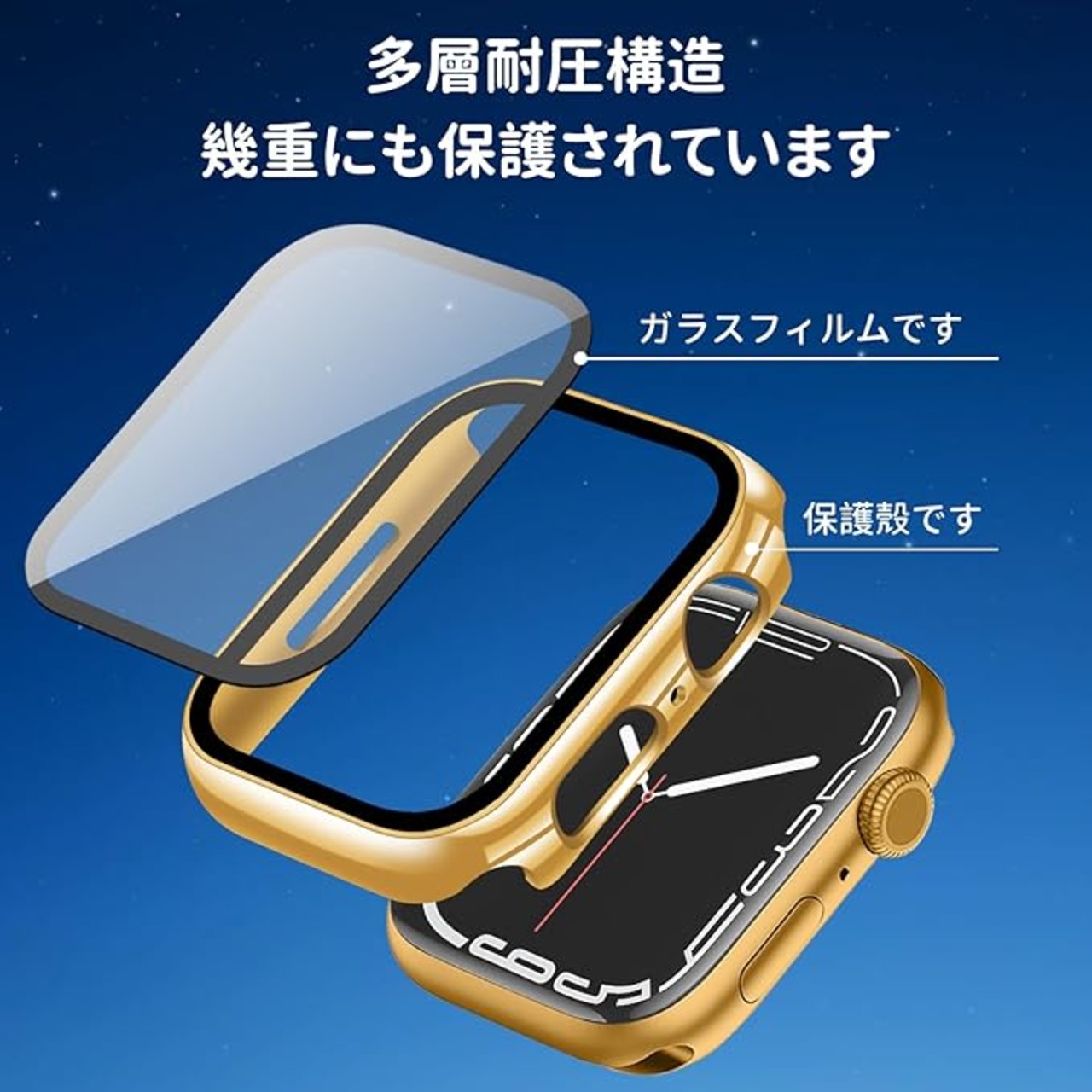 TEMEDO 対応 Apple Watch ケース Series 3/2/1 アップルウォッチ カバー PC素材 メッキ加工 Apple Watch カバー 全面保護 二重構造 アップルウォッチ ケース ガラスフィルム 一体型 高耐久 高透過率 装着簡?(38mm,光沢のゴールド) a