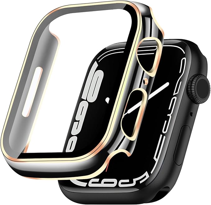 TEMEDO 対応 Apple Watch ケース Series 3/2/1 アップルウォッチ カバー PC素材 メッキ加工 Apple Watch カバー 全面保護 二重構造 アップルウォッチ ケース ガラスフィルム 一体型 高耐久 高透過率 装着簡?(38mm,光沢のブラック+ゴールド) a
