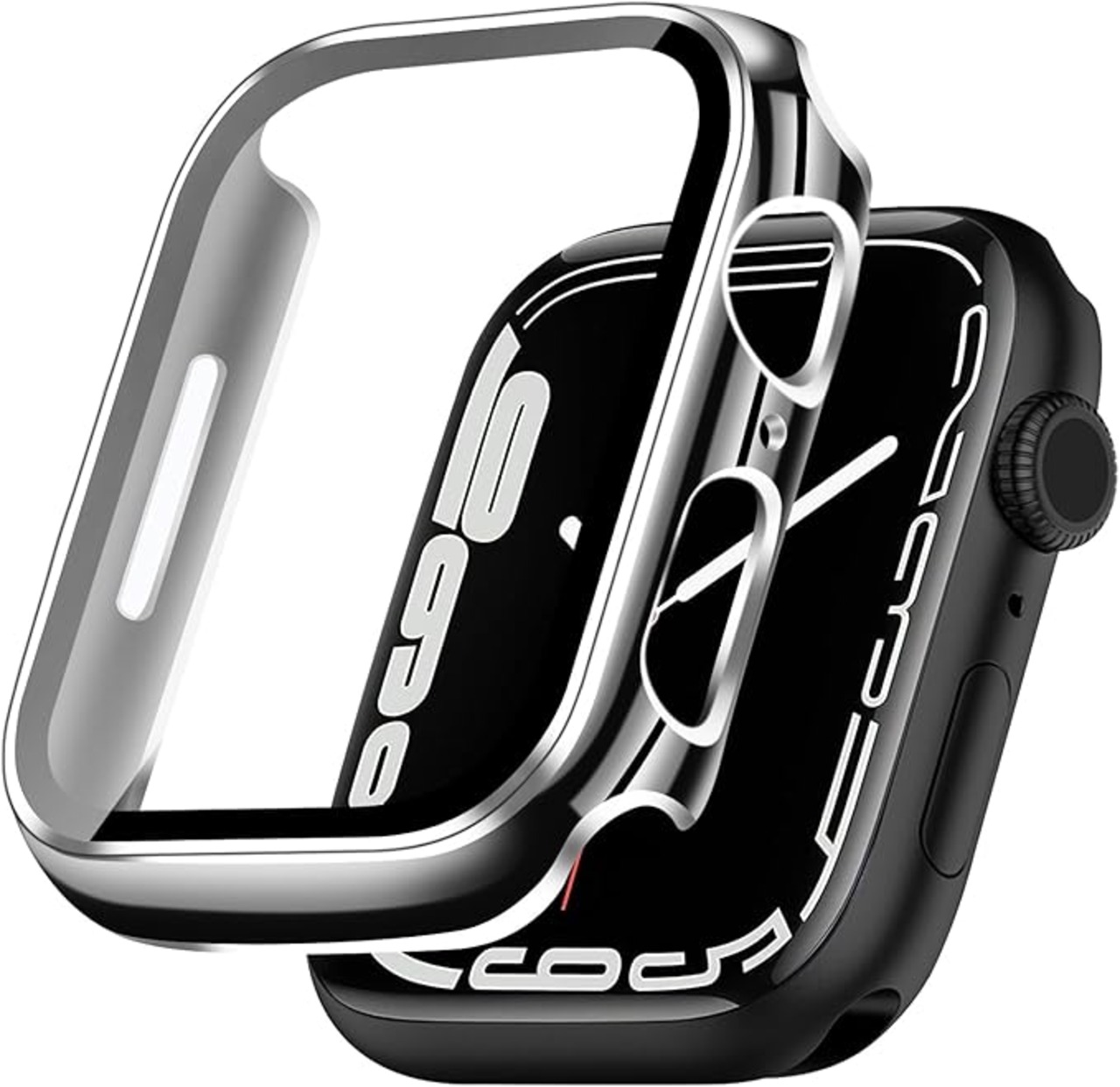 TEMEDO 対応 Apple Watch ケース Series 3/2/1 アップルウォッチ カバー PC素材 メッキ加工 Apple Watch カバー 全面保護 二重構造 アップルウォッチ ケース ガラスフィルム 一体型 高耐久 高透過率 装着簡?(38mm,光沢のブラック+シルバー) a