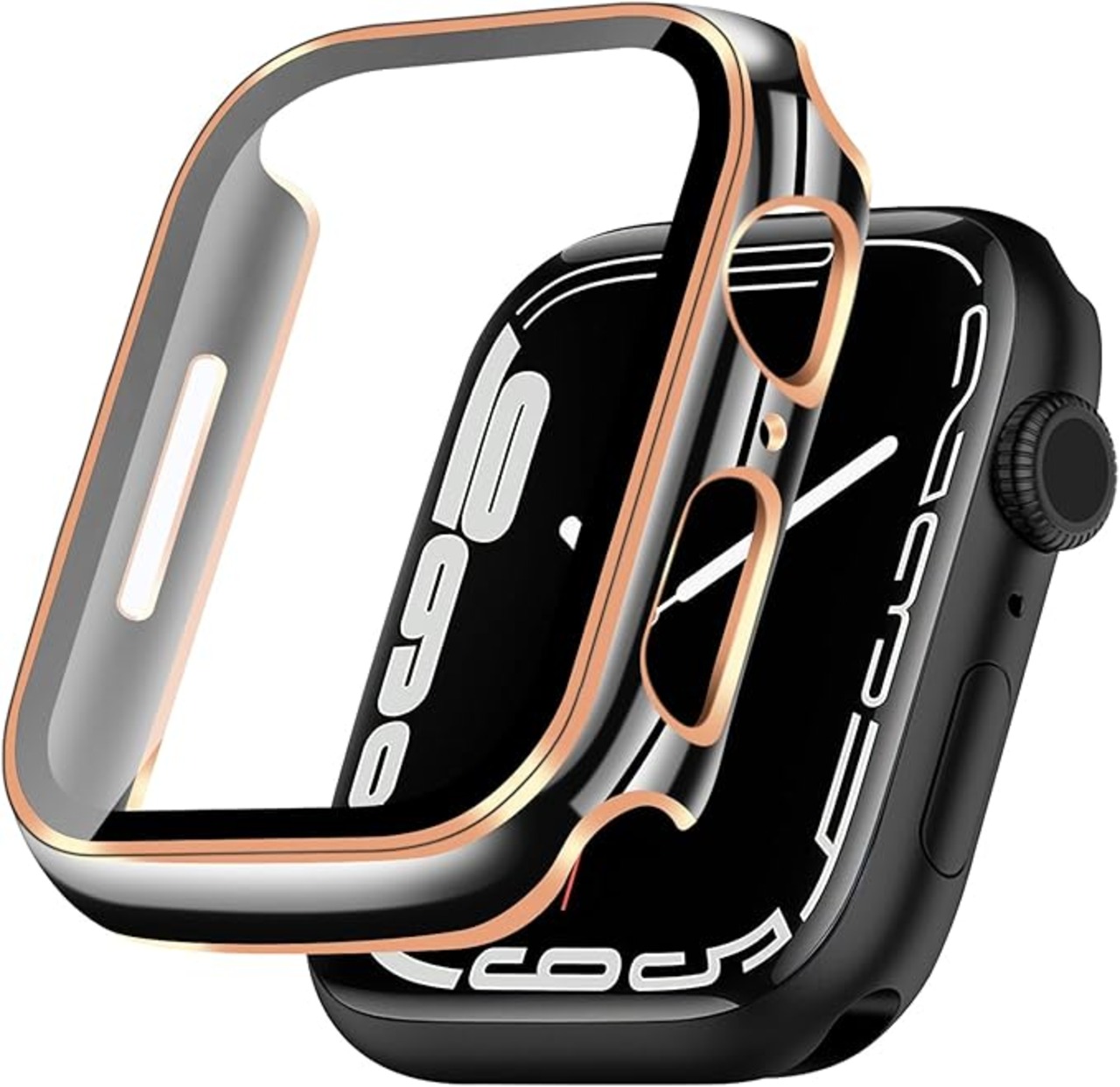 TEMEDO 対応 Apple Watch ケース Series 11 / 10 アップルウォッチ カバー PC素材 メッキ加工 Apple Watch カバー 全面保護 二重構造 アップルウォッチ ケース ガラスフィルム 一体型 高耐久 高透過率 装着簡?(46mm,光沢のブラック+ローズゴールド) a