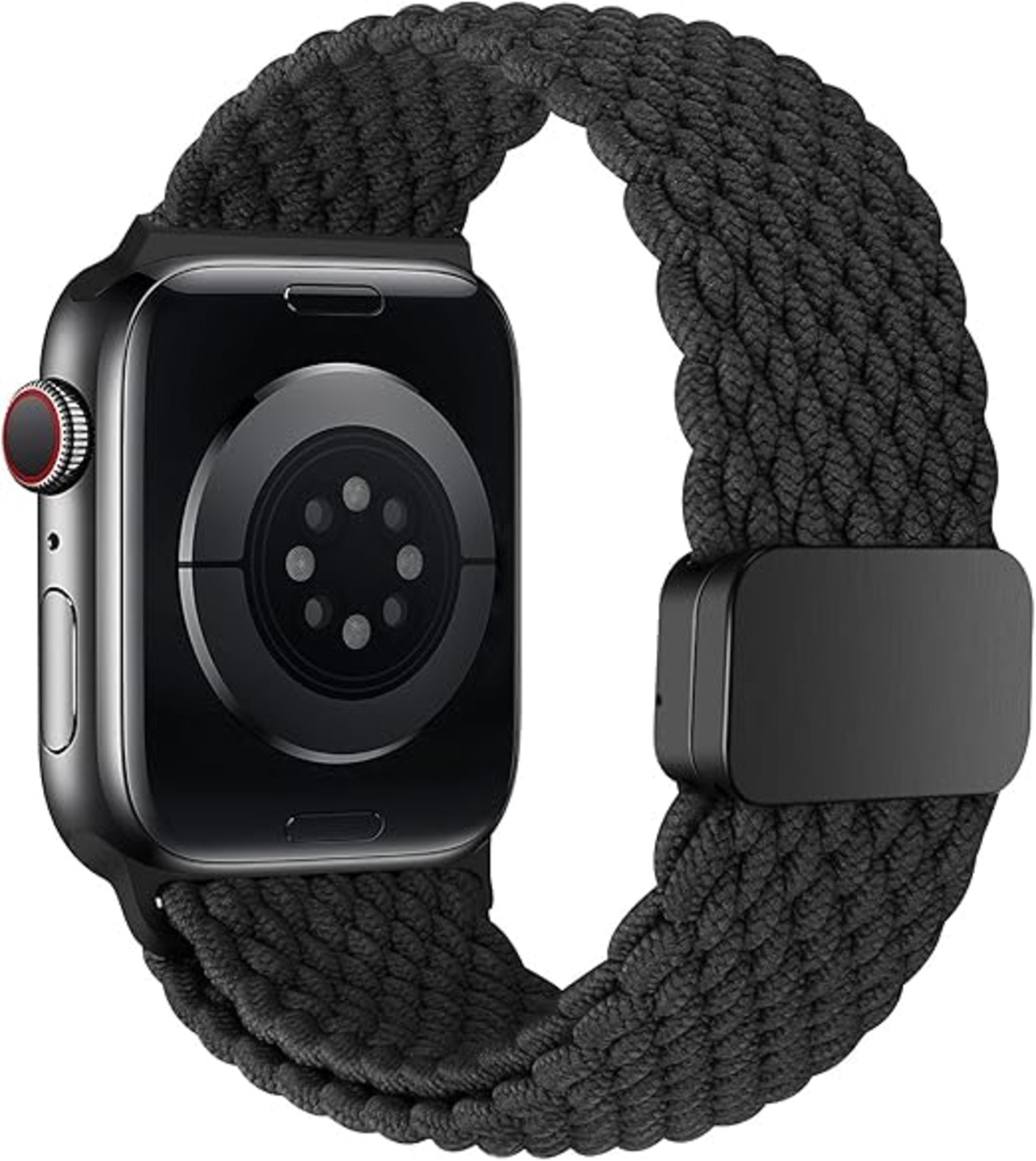 [HITZEE] Band コンパチブル Apple Watch バンド 49/46/45/44/42/41/40/38mm、磁気留め金付きのナイロン弾性編組バンド調節可能なスポーツアップルウォッチバンド付き Apple Watch Ultra 3/2/1 SE 3/2/1 シリーズ 11 10 9 8 7 6 5 4 3 2 1 に対応 (42/44/45/46/49mm,黒) a