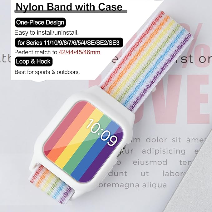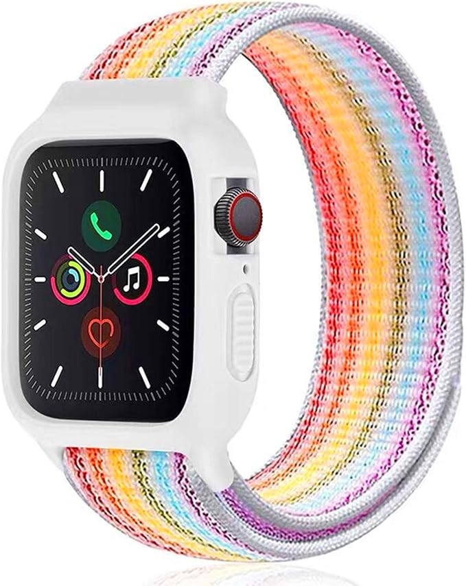 ナイロン製スポーツバンド ケース付き Apple Watchバンド 45mm 41mm 44mm 40mm 保護シリコンバンパーケース ナイロンスポーツループストラップ付き シリーズ8/7/6/5/4/SE/SE2用 キッズ レディース メンズ a