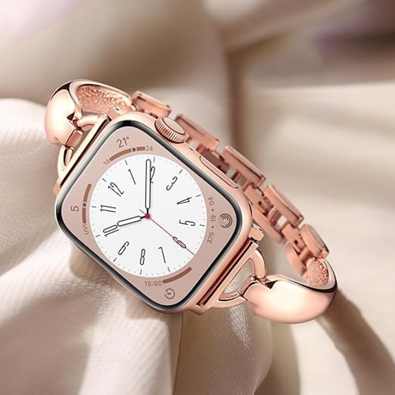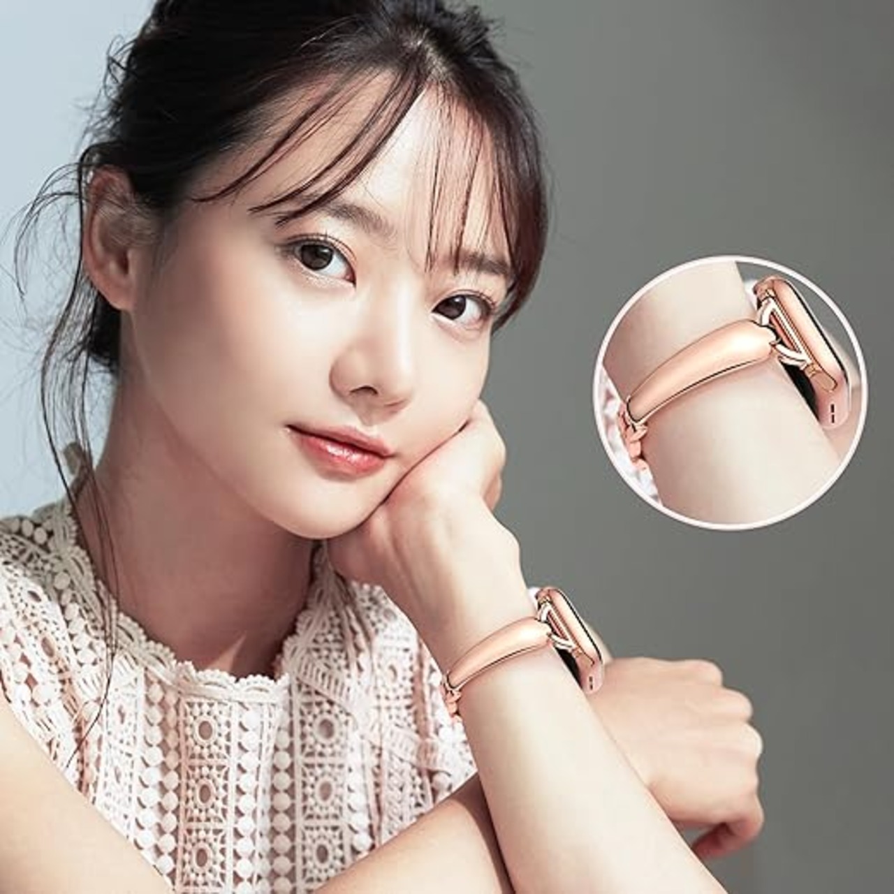 【洗練されたユニークなデザイン】このApple Watchバンドは、ユニークなブレスレットスタイルのデザインで、細部にわたって完璧な曲線が施されており、エレガントで洗練された雰囲気を放っています。シンプルながらもブレスレットタイプのデザインは魅力的で、貴方の手首に高級感をプラスします。