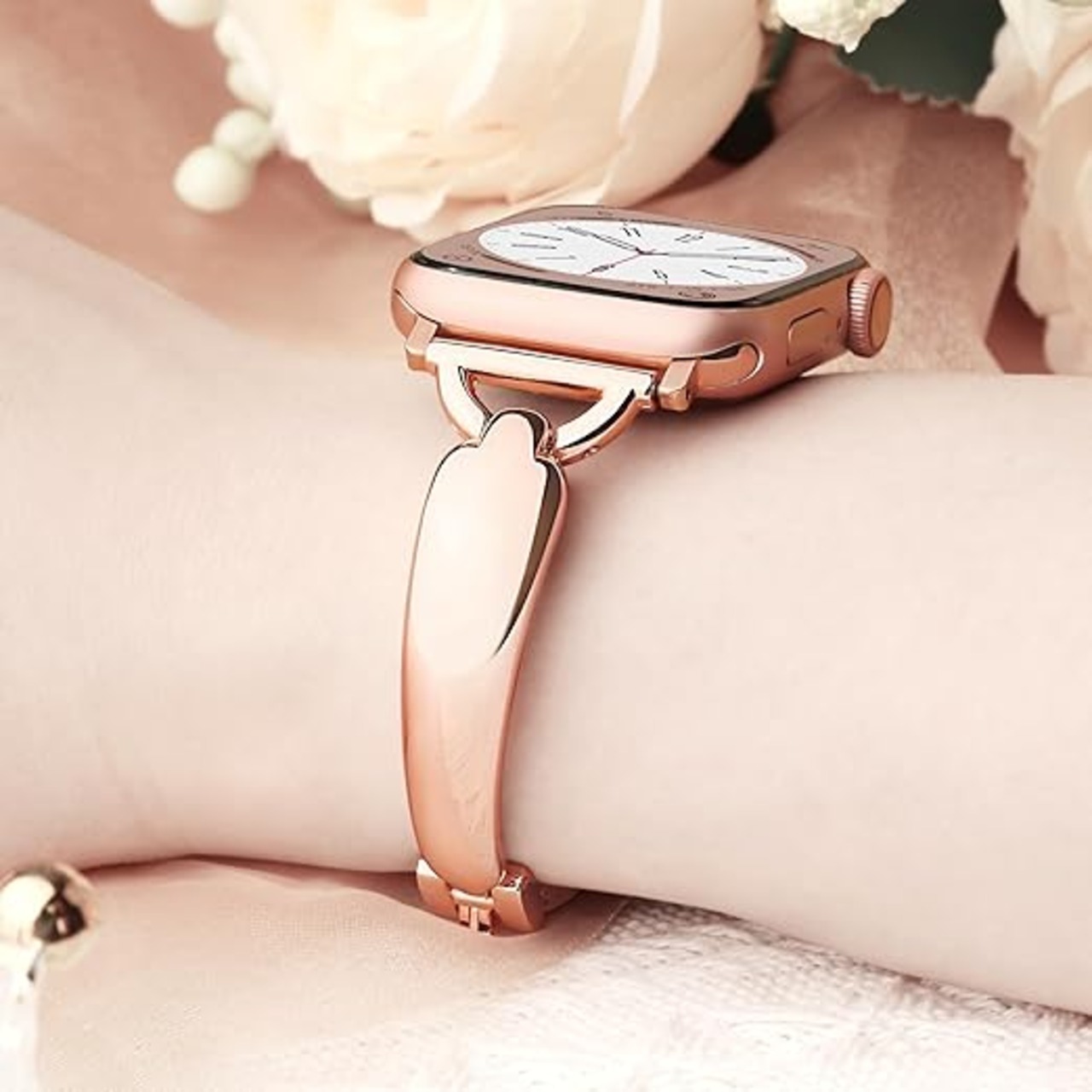 Aniaboho 互換アップルウォッチ バンド D型 細身Apple Watchバンド 42mm(Series 11 10) 41mm 40mm 38mm 金属製iWatch Series 11 SE 10 9 8 7 6 5 4 3 2 1 簡単調整(ローズゴールド) a