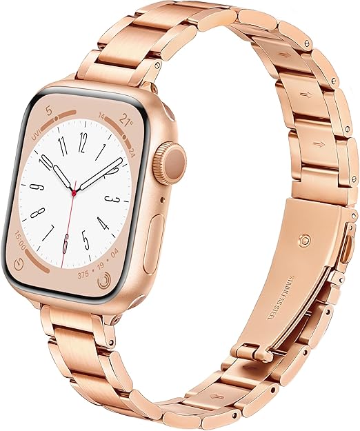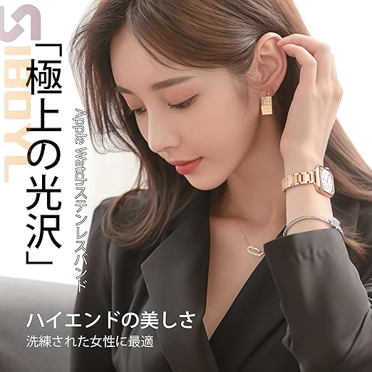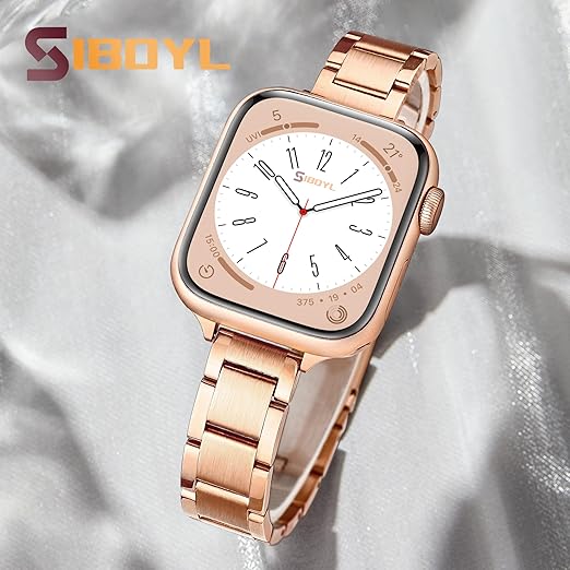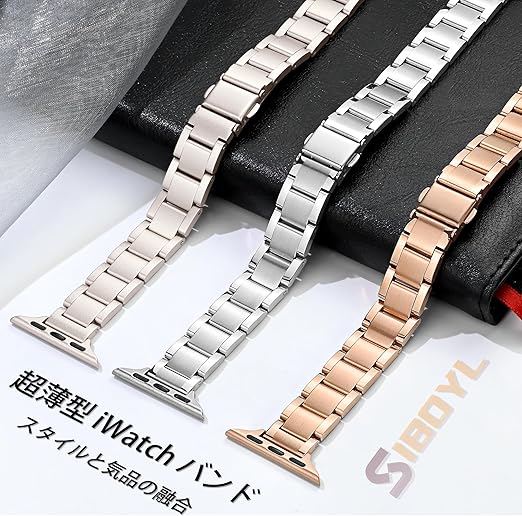 [SIBOYL] 超細ベルト い対応アップルウォッチ バンドレディース 42mm (Series 11 10) 41mm 40mm 38mm、繊細な手触り、超軽量、おしゃれ金属 対応 Apple Watch ベルト、互?あっふウォッチバンド、対応Apple Watch 11 10 Se 9 8 7 6 5 4 3 2 1-ローズゴールド a