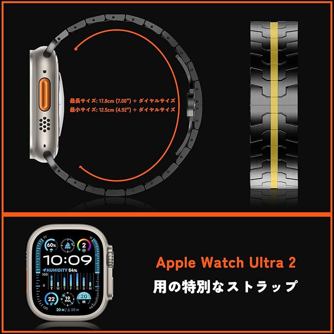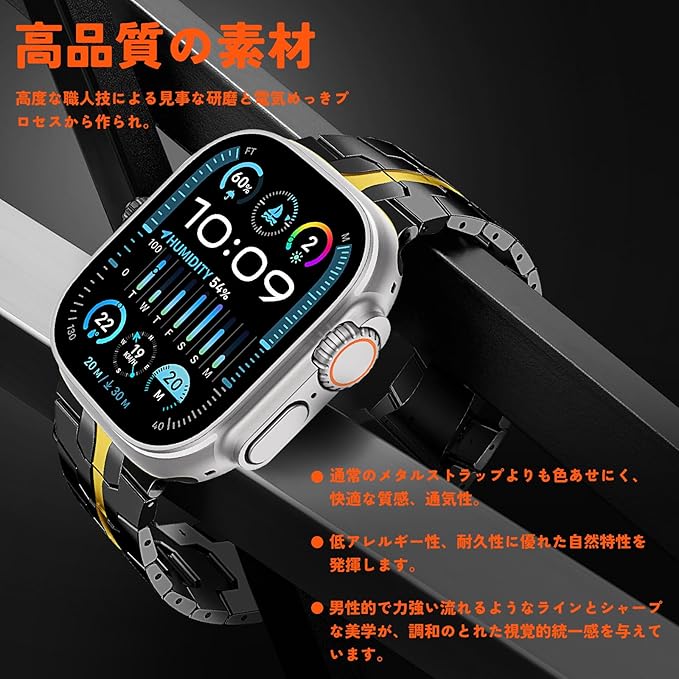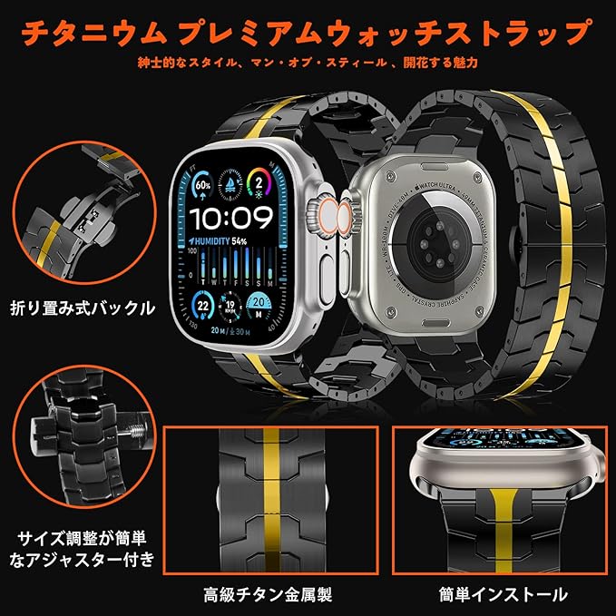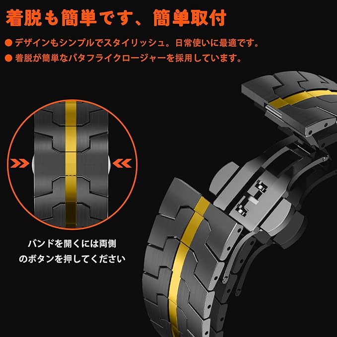 [ShinKin] バンド Apple Watch 49mm /45mm /44mm /42mm /46mm(Series 11、10)対応 高級ステンレス製 金属バンド 交換ベルト 替えストラップ 防錆 調整器具付き 装着簡単調整 耐久性のある ビジネス風 男女兼用 Apple Watch Ultra/SE/Series 11 10 9 8 7 6 5 4 3 2 1 対応(ブラック+ゴールド) a