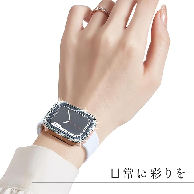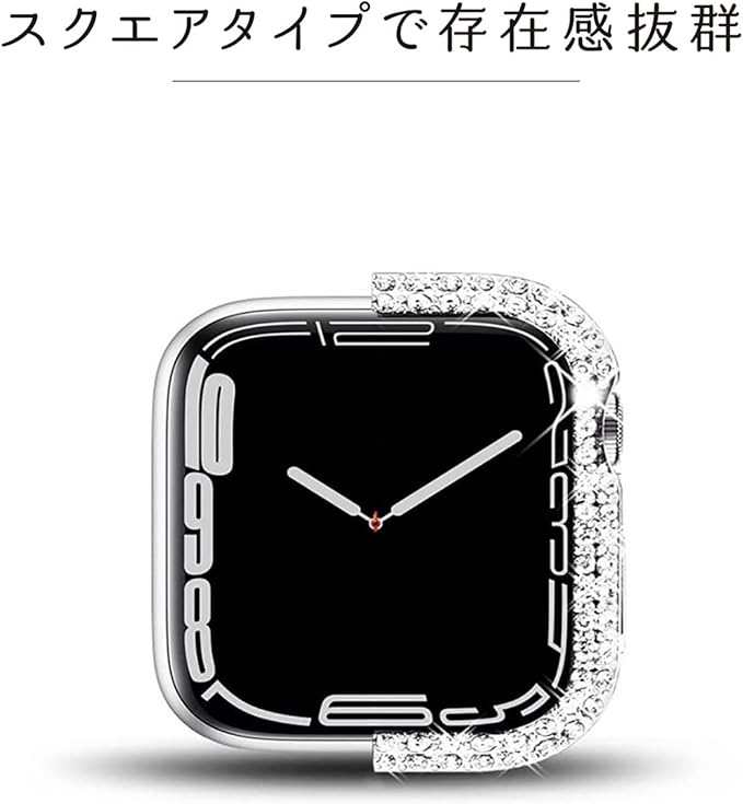 アップルウォッチシリーズ4/5/6/7/8/9/10/11 SE SE2に対応するカバーケース。キラキラストーンが埋め込まれおり、つけるだけで華やかさアップ!ケース幅38mm、40mm、41mm、44mm、45mm、46mm、42mm、最新シリーズ10、11に対応