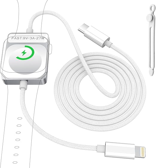 【2-in-1 同時充電】:旅行に便利2in1 磁気急速充電器 USB-C ケーブル(1.2m/4ft)。 iPhone & iWatch USB C 急速充電器。8ピンポート。2 in 1 USB-C 磁気充電器とライトニング ケーブル。(注意: 27W PD高速充電に対応するには、30W以上の充電器が必要です。 30W未満の充電器は、充電時に充電器の最大電力を超えません。 例えば、20Wの充電器は最大20Wで充電されます。)