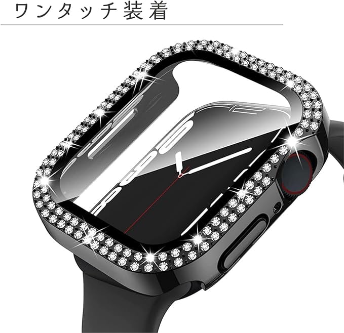 アップルウォッチシリーズ4/5/6/7/8/SEに対応するカバーケース。キラキラストーンが埋め込まれおり、つけるだけで華やかさアップ!ケース幅40mm、41mm、44mm、45mm、46mm、42mmのシリーズ10に対応