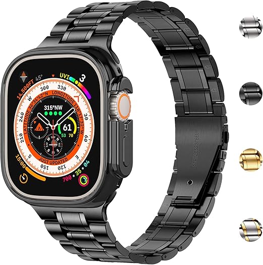 MioHHR ステンレススチールバンド Apple Watchバンド Ultra 3 2 1 49mm メタル交換用リストバンドストラップ iWatch シリーズ Ultra 3 2 1用, ブラック a