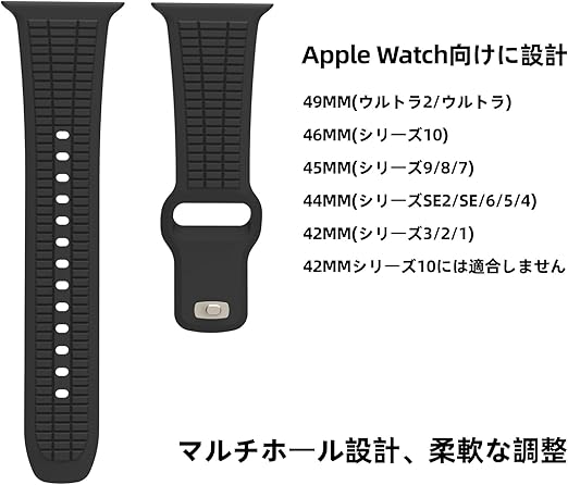 [SKCC] アップルウォッチ バンド シリコン スポーツ 49mm 46mm 45mm 44mm 42mm 男性 交換ベルト Compatible with Series 10/9/8/7/6/5/4/3/2/1/SE/SE2/ウルトラ/Ultra2対応 運動 柔らかい 蒸れない a