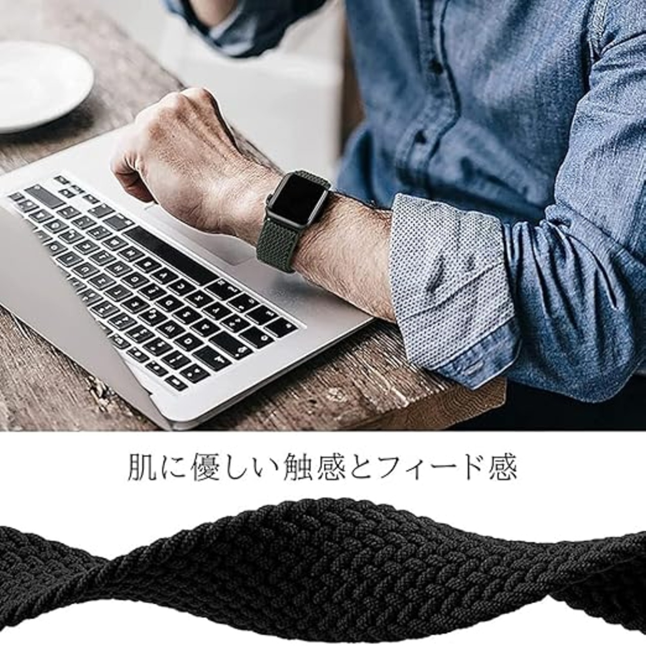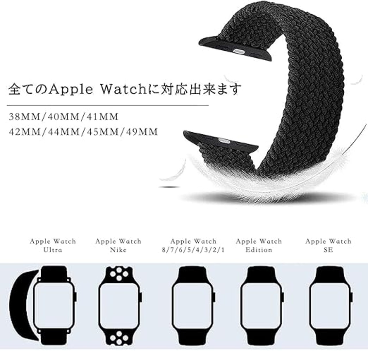 コンパチブル apple watch バンド iwatch バンド 編組バンド apple watch Ultra3/Ultra2/Ultra/10/9/8/7/6/5/4/3/2/1/SEに対応 38mm/40mm/41mm 42mm/44mm/45mm/46mm/49mm 着け心地 アップルウォッチ用バンド シリコン糸&ABSアダプター a