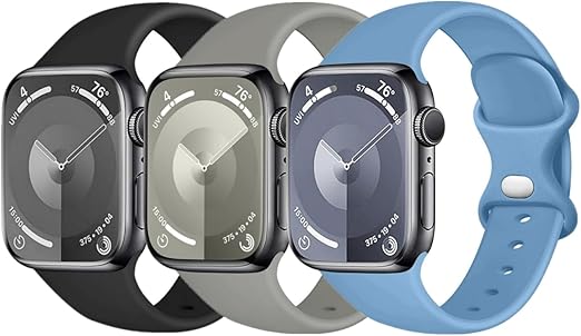3本セット コンパチブル apple watch バンド アップルウォッチ バンド iwatch series 11/10/9/Ultra3/2/Ultra/8/7/6/5/4/3/2/1/SE スポーツバンド 交換用ベルトiwatch 38/40/41/42/44/45/49mm おしゃれ 防汗 柔らかいシリコン (ブラック/グレー/ブルーフォグ, 49/46/45/44/42mm(Series 3) S/M) a