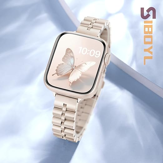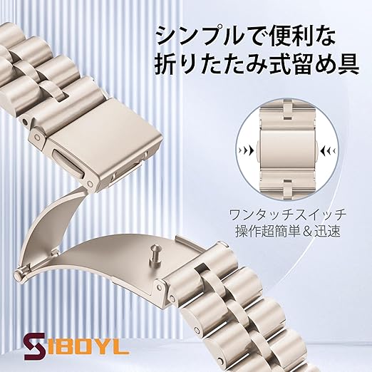 [SIBOYL] 超細 おしゃれい対応アップルウォッチ バンド 46mm 45mm 44mm 42mm(Series 3 2 1) 49mm、繊細な手触り、かわいいiWatch ベルト、コンパチブルApple Watch バンド ステンレス、対応のアップルウォッチ ベルトレディース、対応 Apple Watch Se 11 10 9 8 7 6 5 4 3 Ultra 3 2 1-スターライト a
