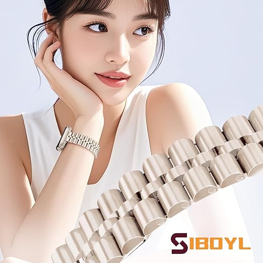 【エレガントでシンプル】丸みのあるチェーンと繊細なパーツがリズムよく連なり、奥行きと立体感を演出。ステンレス特有のやわらかな光沢が控えめな華やかさを添えます。細部まで美しさを追求したこのアップルウォッチ バンドは、上質を求めるすべての女性におすすめです。
