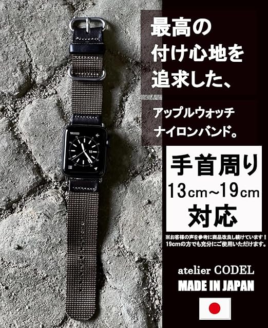 atelierCODEL アップルウォッチ バンド 職人が最高の付け心地を追求 apple watch ナイロン レザー ベルト 最新11含む全シリーズ対応 (38mm/40mm/41mm/42mm, ブラック) a