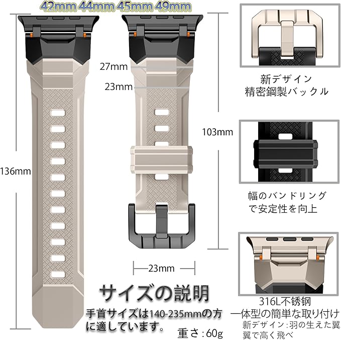 BinGeLi コンパチブル Apple Watch バンド 49mm 46mm 45mm 44mm 42mm アップルウォッチ スポーツ バンド ゴム 交換用 ベルト 耐衝撃 防水 防汗メンズ Watch Ultra2/Ultra Series 10 9 8 SE2 7 6 SE 5 4 3 2 1に対応