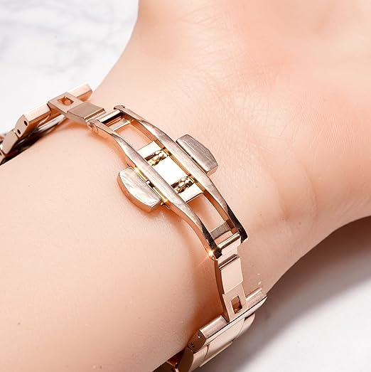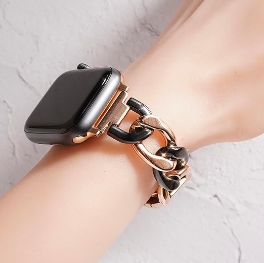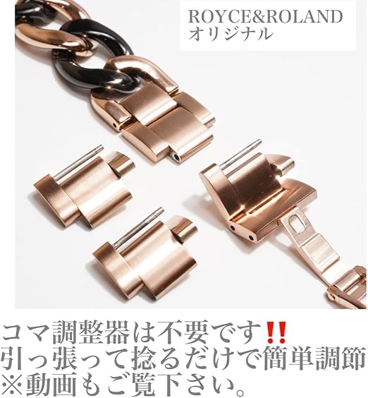 Royce&Roland Apple watch チェーンバンド バタフライバックル おしゃれ アップルウォッチ 時計 バンド (ステンレス/シルバー) レディース メンズ ギフト プレゼント (44mm 45mm 46mm 49mm, ピンクゴールド/ブラック) a