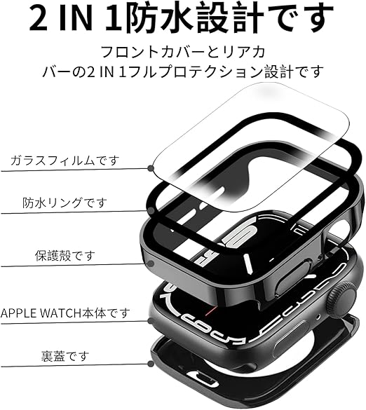 【360ど度 防水設計&優美な外観】Apple Watch ケースは3D直角エッジデザインを採用し、従来のApple Watchケースの固定スタイルを覆す。内蔵のユニークな設計の防水シリコンシールリングは、優れた防水性能を持