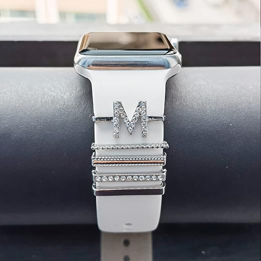 装飾リングループ ー For Apple Watchバンド 38mm 40mm 41mm 42mm 44mm 45mm 49mm iWatch 8 7 6 5 4 3 2 1 SE Ultra メタルブリングダイヤモンド ファッションアクセサリー 男性 女性 腕時計の装飾 腕時計バンド アクセサリ (バンドなし), 文字 M a