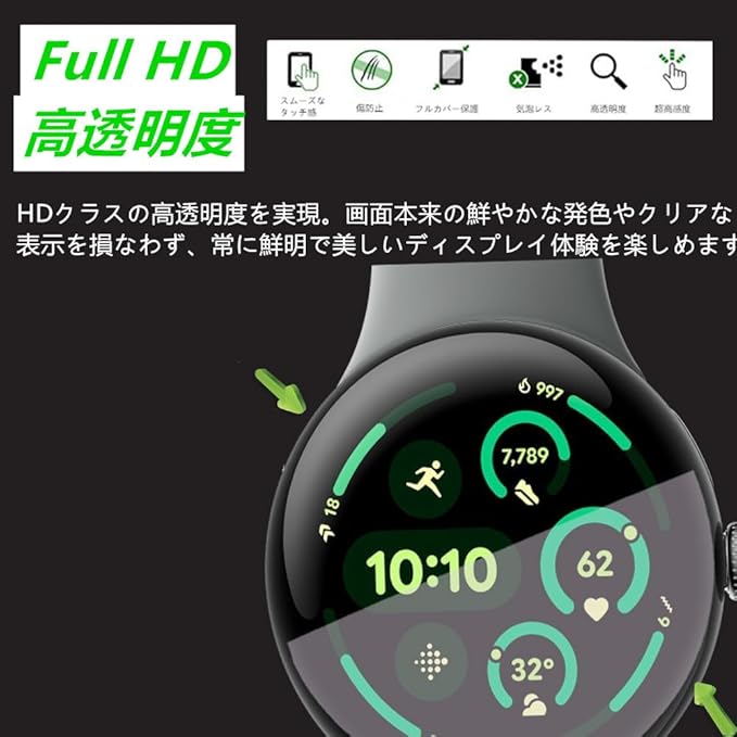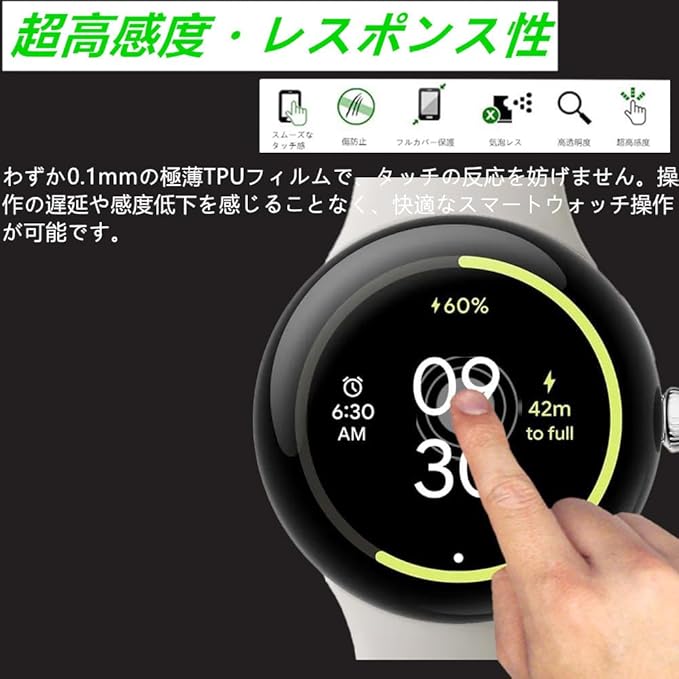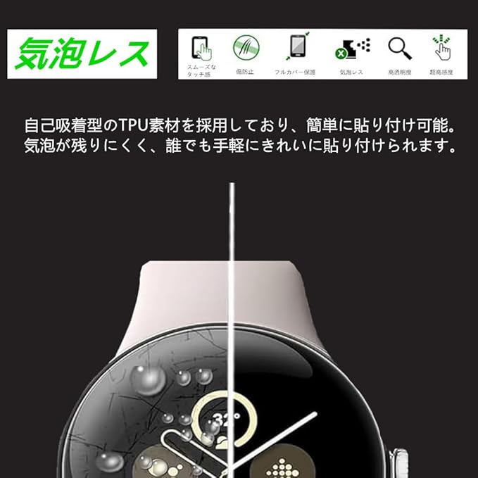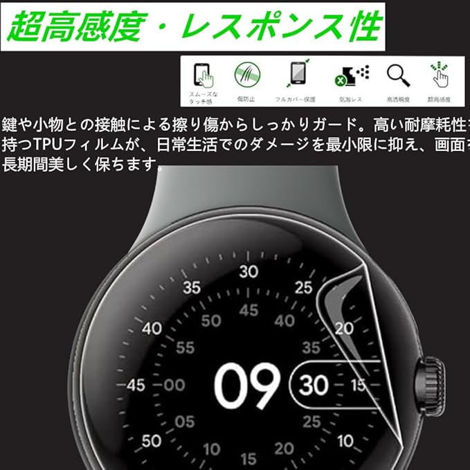 [高透過率&高感度タッチ]高透過率を持つ極薄TPU素材製、フィルムの装着感はゼロで、高い透明感Apple Watch画面の精細さを保ちます。高い品質なTPUで優れたタッチ感を実現します。