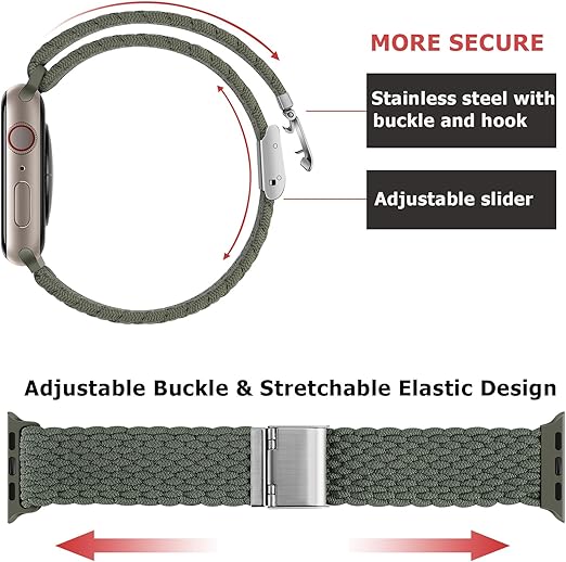 Anlinser アップルウォッチ バンド コンパチブル Apple Watch バンド 49mm 45mm 44mm 42mm、調整可能なバックルを備えた弾性スポーツバンド Apple Watch Ultra SEシリーズ8 7 6 5 4 3に対応、緑 a
