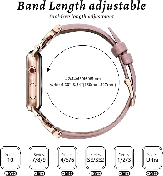 Wutwuk コンパチブル アップルウォッチ バンド スリムレザー製 Apple Watch バンド 42mm 44mm 45mm 46mm 49mm 女性専用 本革 レディース 交換ベルト オシャレ かわいい 装着簡単 iWatch Ultra Ultra2 Ultra3 SE SE2 Series 11 10 9 8 7 6 5 4 3 2 1に対応 通勤 ビジネス デート プレゼント(ピンク) a