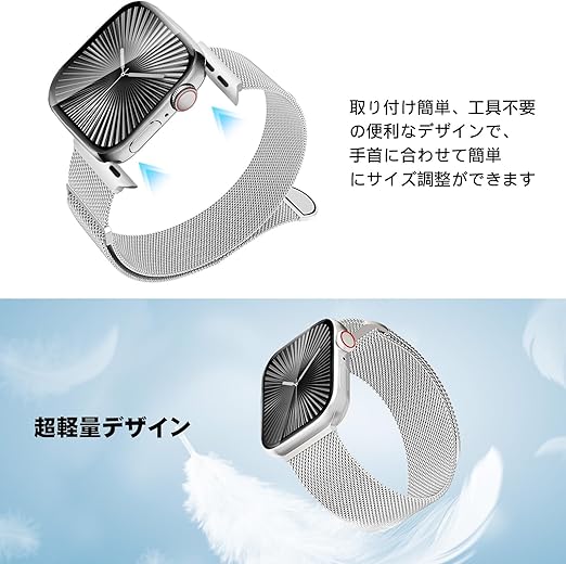 【対応機種】CAERMA コンパチブル Apple Watch Series 11/10/9/8/7/6/5/4/3/2/1/SE3/SE2/SE/Ultra2/Ultra。★対応 アップルウォッチ バンド 49mm/46mm/45mm/44mm/(42mm Series3) の手首周り:155mm〜230mm (6.1"〜9.06") に適しています。男女兼用ビジネス風設計、複数のシーンに対応できるApple Watchバンドです。