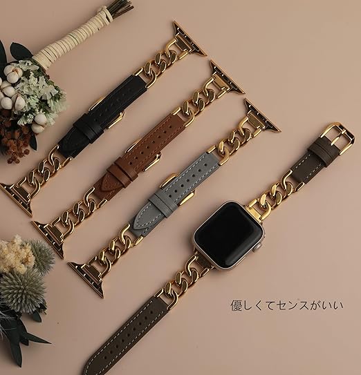 コンパチブル アップルウォッチ バンド本革 Apple Watch バンド ステンレス appleウォッチバンドチェーン 調整工具不要Apple Watch Series Ultra2/Ultra/SE2/SE/9/8/7/6/5/4/3/2/1に対応49mm 45mm 44mm 42mm 41mm 40mm 38mm a