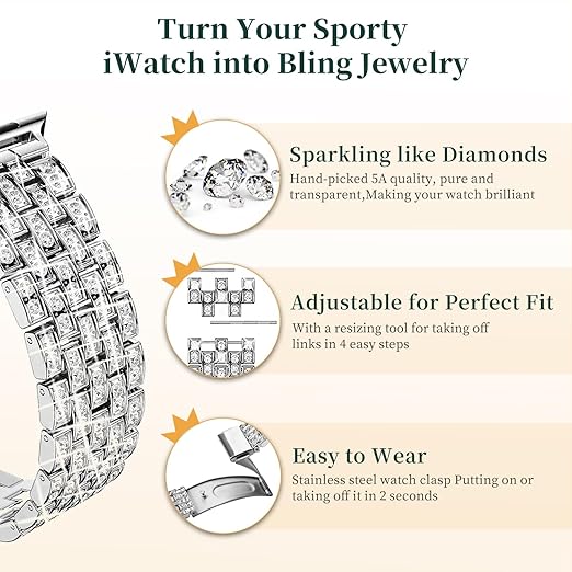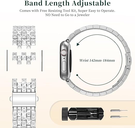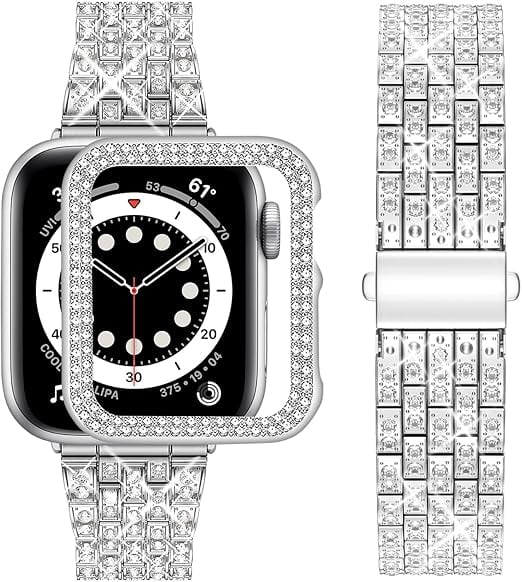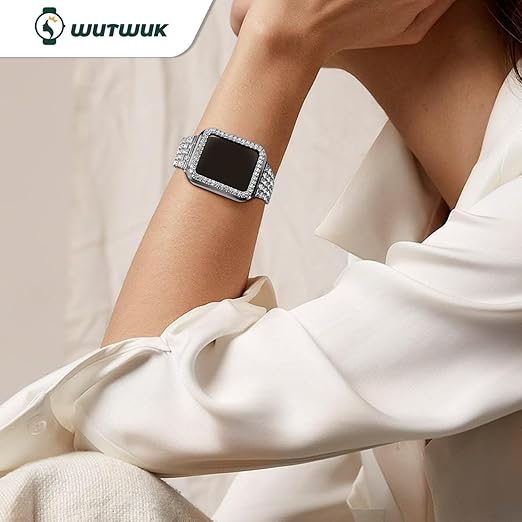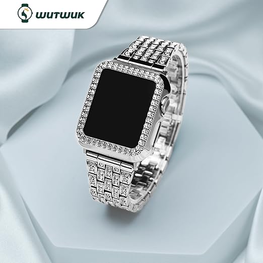 [wutwuk] Apple Watch バンド キラキラ 40mm 保護ケース付き ジュエリー メタル製 アップルウォッチバンド 交換ベルト レディース グリッター Apple Watch SE2/6/SE/5/4対応 ダイヤモンド appleウォッチ ブレスレット ラインストーン シルバー a