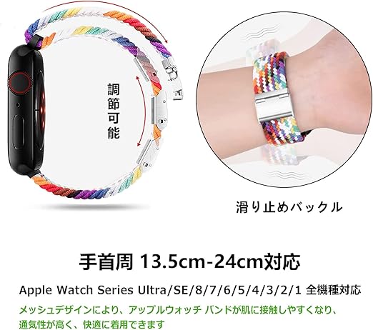 アップルウォッチ バンド Apple Watch バンド 49mm/46mm/45mm/44mm/42mm 編み込み 伸縮 調整可能 ソロループ Series Ultra2/Ultra/10/9/8/7/6/SE/SE2/5/4/3/2/1 全機種対応 スポーツ ナイロン ベルト a
