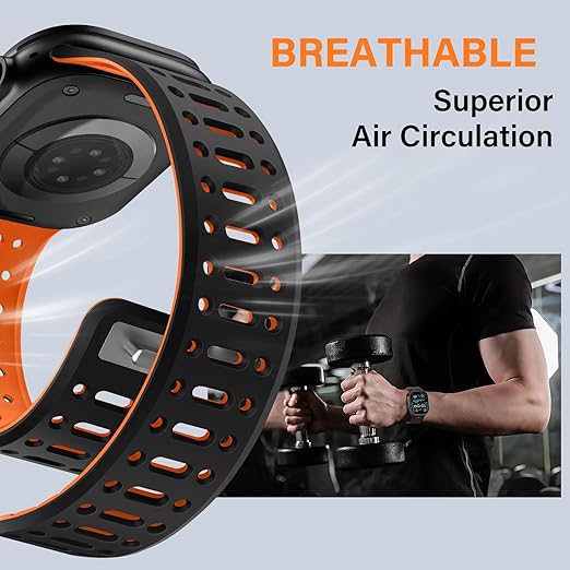 Sixmoat磁気バンドコンパチブルApple Watchバンド 49mm Ultra3/2/1 46mm 45mm 44mm 42mm男女兼用通気性シリコンスポーツバンドiWatch Series 11 10 9 8 7 6 5 4 3 SE 対応, ブラック/オレンジ a