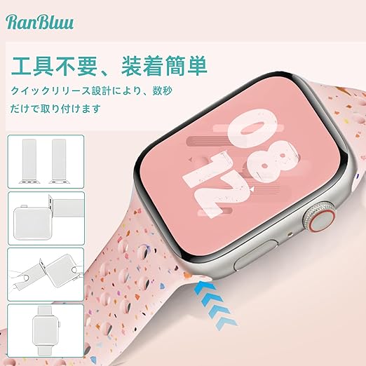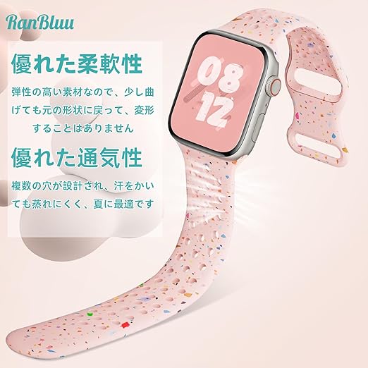 RanBluu コンパチブル Apple Watch SE 3 40mm/Series 11 42mm バンド アップルウォッチ 対応 バンド 42mm/41mm/40mm/38mm 替えベルト iWatch Series 10/9/8/7/6/5/4/3/2/1/SE/SE 2 交換バンド シリコン製 スポーツバンド 42ミリ 41ミリ 40ミリ 38ミリ ストラップ 通気性 (42mm/41mm/40mm/38mm ピンク) a