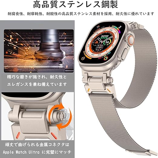【高級Ultra風デザイン】このアップルウォッチバンドは錆びにくいメッシュデザインで、フィット感が高く通気性もよく、蒸れにくいので、長時間快適に使用ができます。高級なUltra風、汗や雨に濡れたまま、使っても安心シャフ-や水泳、サ-フインて使っても大丈夫です。