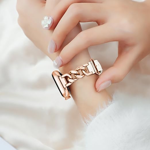 [SIBOYL] 人気細い対応アップルウォッチ バンド46mm 45mm 44mm 49mm 42mm(Series 3/2/1)、カウボーイチェーンステンレスレザあっふウォッチバンド、調整ツール不要、トレンドとクラシックの創造的な組み合わせ、互換性apple watch ベルトレディース、対応Apple Watch 11 10 Se 9 8 7 6 5 4 3 Ultra 3 2 1-ローズゴールド b
