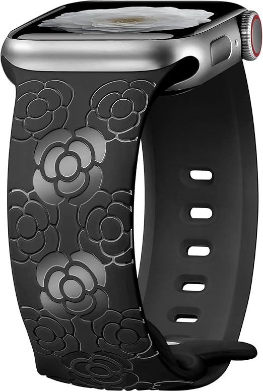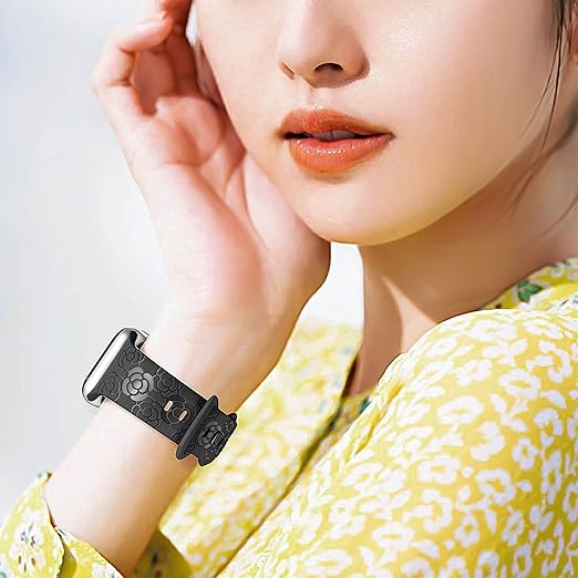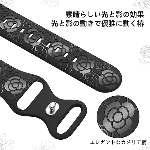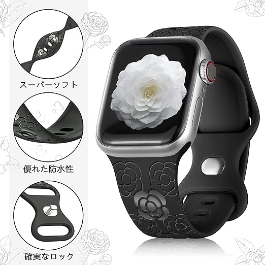 [SIBOYL] ロマンチックなカメリアベルト シリコン対応アップルウォッチ バンド レディース46mm 45mm 44mm 49mm 42mm(Series 3/2/1)、調整ツール不要、トレンディとヴィンテージの融合、可愛いコンパチあっふウォッチバンドスポーツ、対応Apple Watch ベルト11 10 Se 9 8 7 6 5 4 3 Ultra 3 2 1-ブラック a