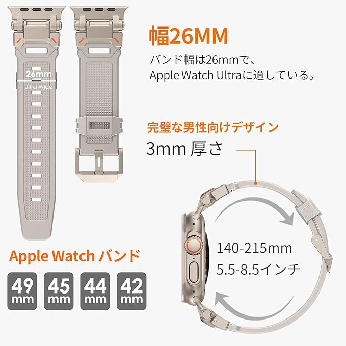 [GLILAVOX] 新登場 アップルウォッチ バンド Compatible with Ultra 3/Ultra 2/ Ultra 49mm,Series SE 3/SE2/SE/11/10/9/8/7/6/5/4/3/2/1 46mm/45mm/44mm/42mm アップルウォッチ バンド Apple Watch用ベルト スポーツ 防水 TPU 柔らかい