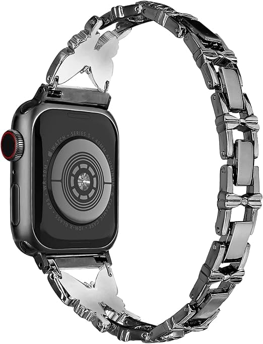 [Daturus] 互換 Apple Watch バンド series10/9/8/7/6/5/4/3/2/1/SE対応 アップルウォッチ ベルト ダイヤモンド付きステンレスベルト 金属ベルト アップルウォッチバンド 交換バンド 女性向け お洒落・ファッション バタフライデザイン 工具なし調節可能(38mm/40mm/41mm/(42mm Series10),黒) a