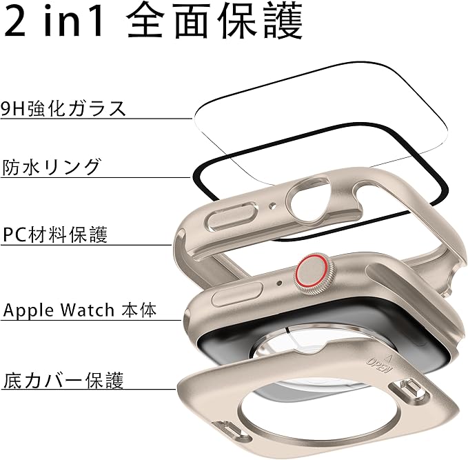 【全面保護】耐久性のあるハードPCバンパーには透明なスクリーンプロテクターが内蔵されており、Apple Watchの画面と曲面エッジを完全にカバーします。完全なカバーのケースは、過酷な環境でもApple Watchを傷や衝撃、偶発的な落下か