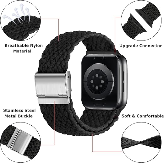 Anlinser アップルウォッチ バンド コンパチブル Apple Watch バンド 41mm 40mm 38mm、調整可能なバックルを備えた弾性スポーツバンド Apple Watch SEシリーズ8 7 6 5 4 3に対応、黒 a