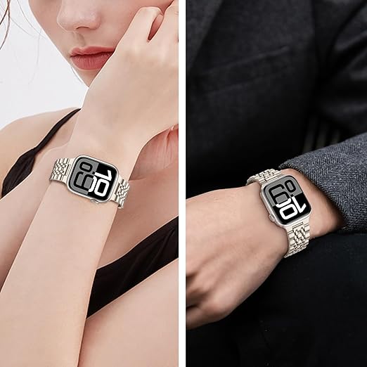 スポーツ バンド と互換性のある Apple Watch 49mm 46mm 45mm 44mm 42mm, プレミアムステンレススチールメタル交換バンドコンパチブル iWatch Ultra 2 Ultra シリーズ 10 9 8 7 6 5 4 3 2 1 SE に対応 男女兼用(スターライト) a